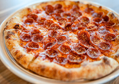 We believe the basics should be done best—no shortcuts, no gimmicks. Take our dough: while most places turn it around in under 24 hours, we let ours ferment for a full five days, resulting in a crust that’s light and chewy inside, perfectly crisp and blistered outside. At any given time, more than 1,500 dough balls are in our slow-rise rotation—each one developing depth, texture, and character.